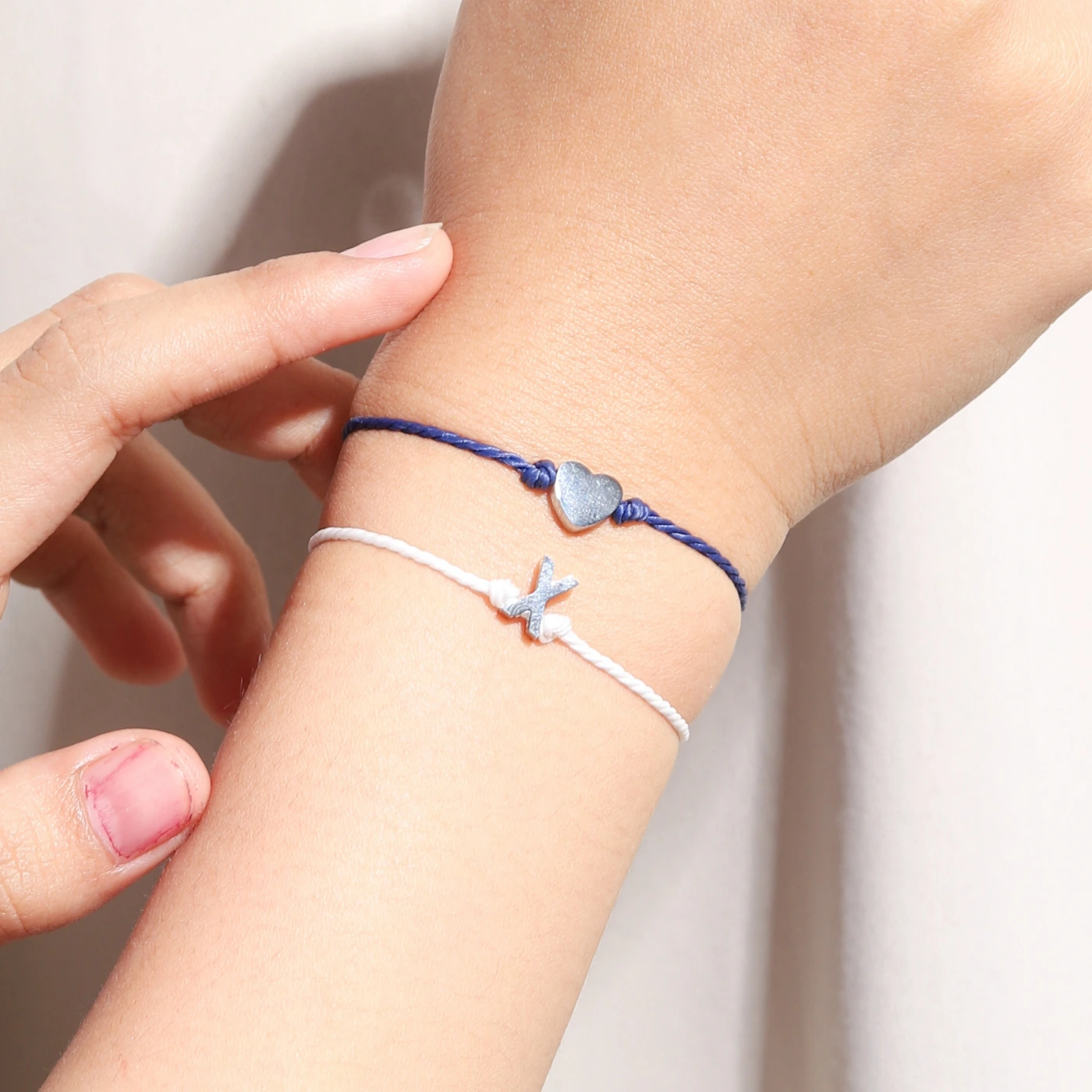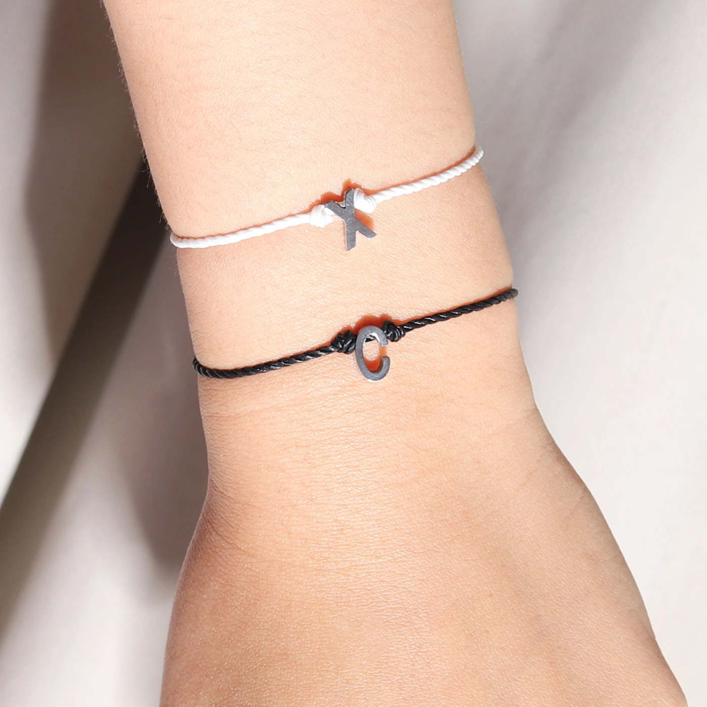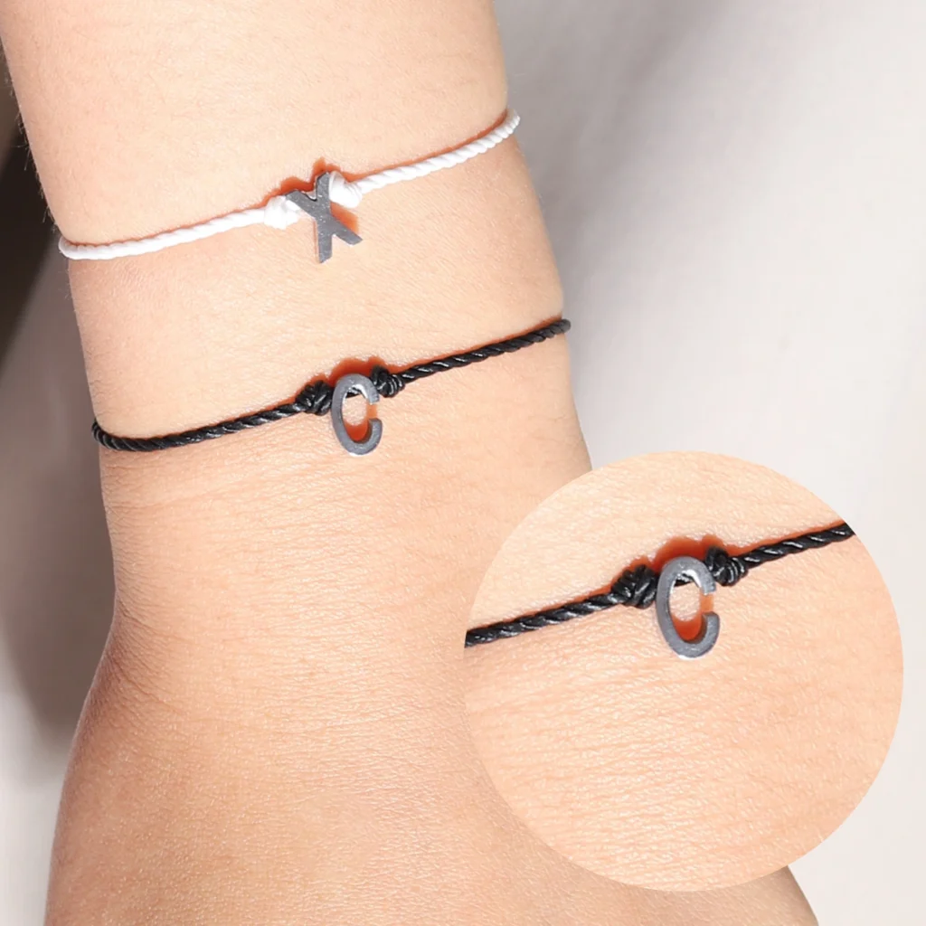 Material tali dibuat dari polyester cord, dan material inisial dari titanium stainless steel. Bikin gelang ini jadi tahan air & tahan karat!
